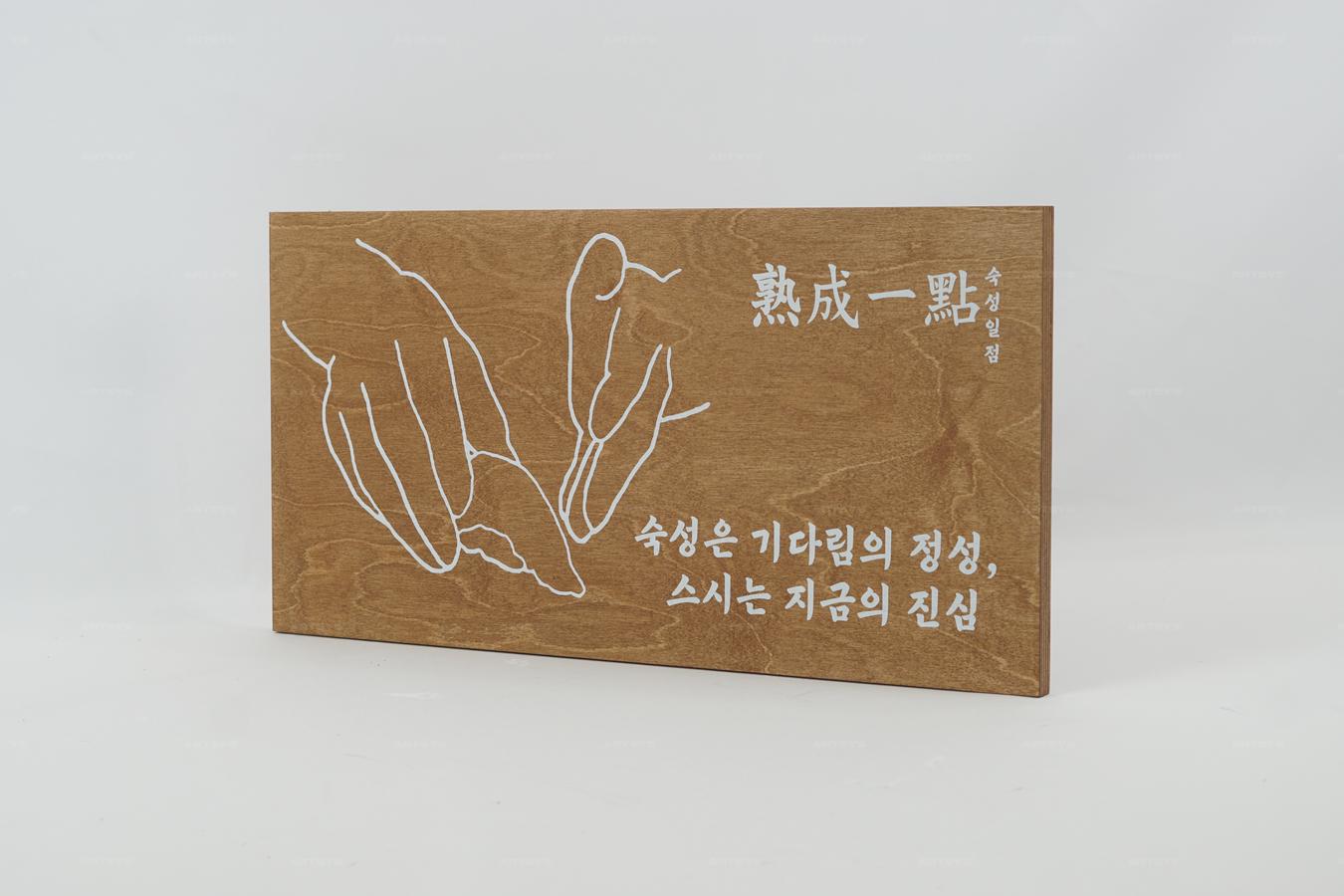 상품 소개 이 나무 입간판은 숙성 스시 전문점을 위해 디자인되었습니다. 갈색의 따뜻한 느낌과 세련된 손 그림이 어우러져 고급스러운 분위기를 자아냅니다. '숙성은 기다림의 정성, 스시는 지금의 진심'이라는 문구는 고객에게 깊은 인상을 남기며, 나무의 자연스러운 질감이 매력적입니다. 이 입간판은 스시 전문점의 정체성을 강조하며, 고객의 시선을 사로잡는 완벽한 선택입니다.