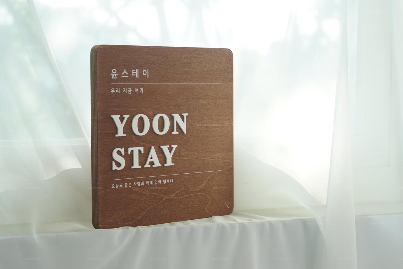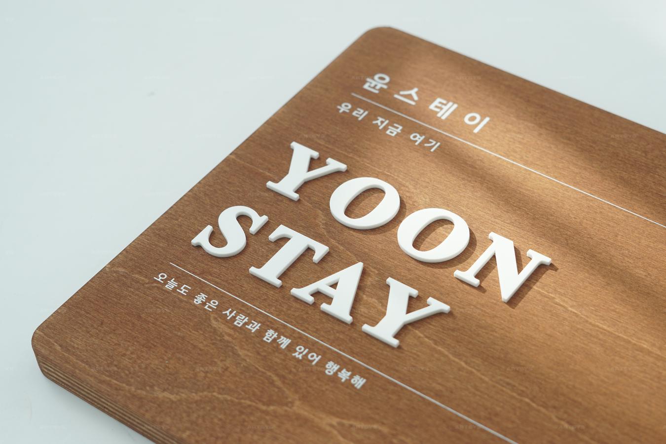 상품 소개 | 이 우드 소재의 윤스테이 간판은 따뜻한 갈색 톤으로 디자인되어, 고객에게 편안한 느낌을 전달합니다. '우리 지금 여기'라는 메시지와 함께, 'YOON STAY'라는 영어 표기가 조화롭게 어우러져 있습니다. 좋은 사람들과 함께하는 행복한 시간을 상징하는 이 간판은 숙소나 카페, 가게에 적합합니다. 나무의 자연스러운 질감과 색감이 돋보이는 이 제품은 고객의 시선을 끌며, 브랜드의 이미지를 한층 높여줄 것입니다. | ||