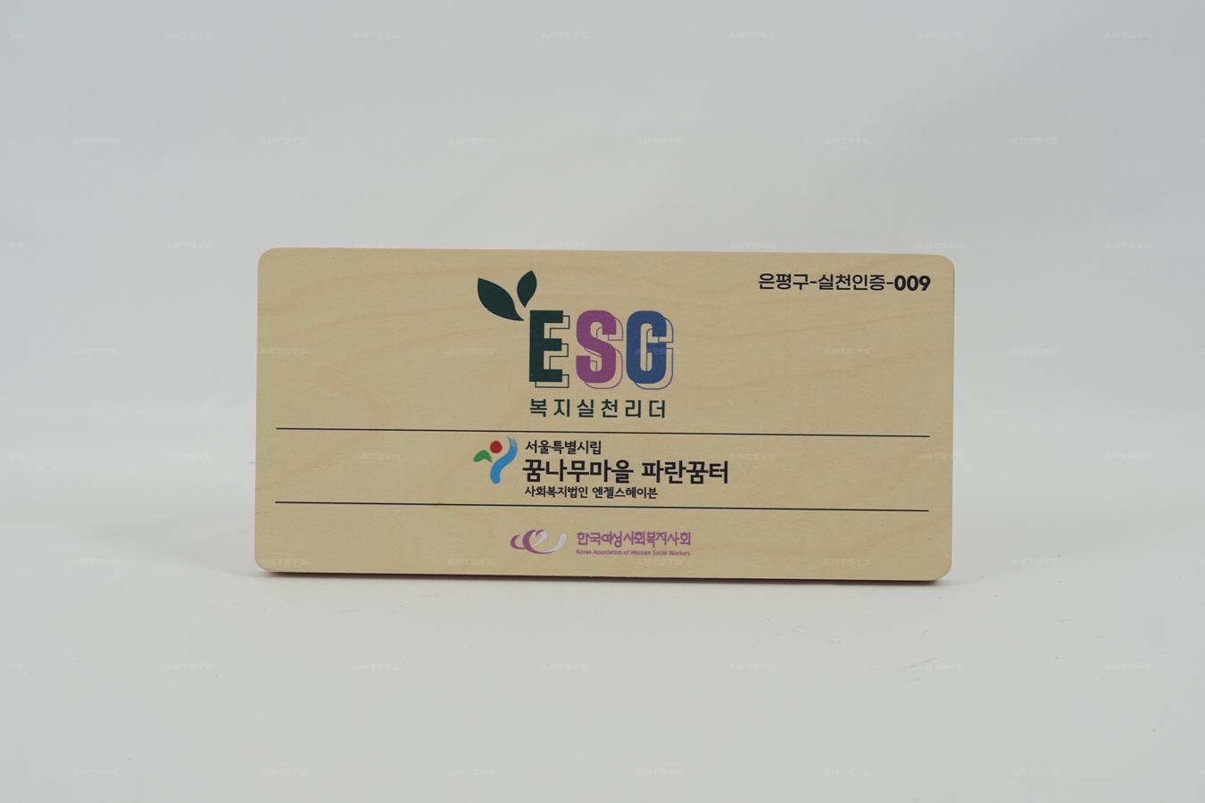 제목 | 나무 소재의 ESG 복지실천리더 표지판 | ||