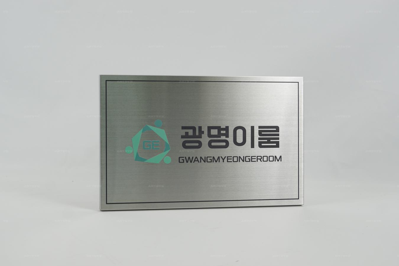 상품 소개 | 이 스테인리스 스틸 사인판은 현대적인 디자인으로, '광명 이룸'이라는 텍스트가 깔끔하게 각인되어 있습니다. 실버미러 색상으로 제작되어 고급스러운 느낌을 주며, 내구성이 뛰어나 오랜 사용이 가능합니다. 비즈니스의 이미지를 한층 높여줄 이 사인판은 다양한 공간에 적합합니다. | ||