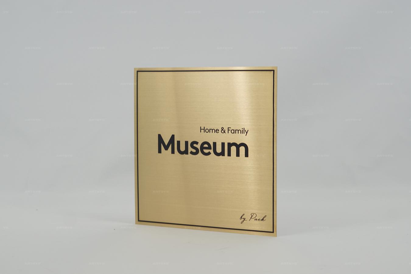 상품 소개 | 고급스러운 스테인리스 스틸로 제작된 금색 박물관 간판입니다. 'Home & Family Museum'이라는 세련된 디자인이 돋보이며, 미러 마감 처리로 더욱 빛나는 효과를 제공합니다. 이 간판은 공간의 품격을 높여주며, 다양한 장소에 잘 어울립니다. 전문적인 간판 제작으로 여러분의 공간을 더욱 특별하게 만들어보세요. | ||