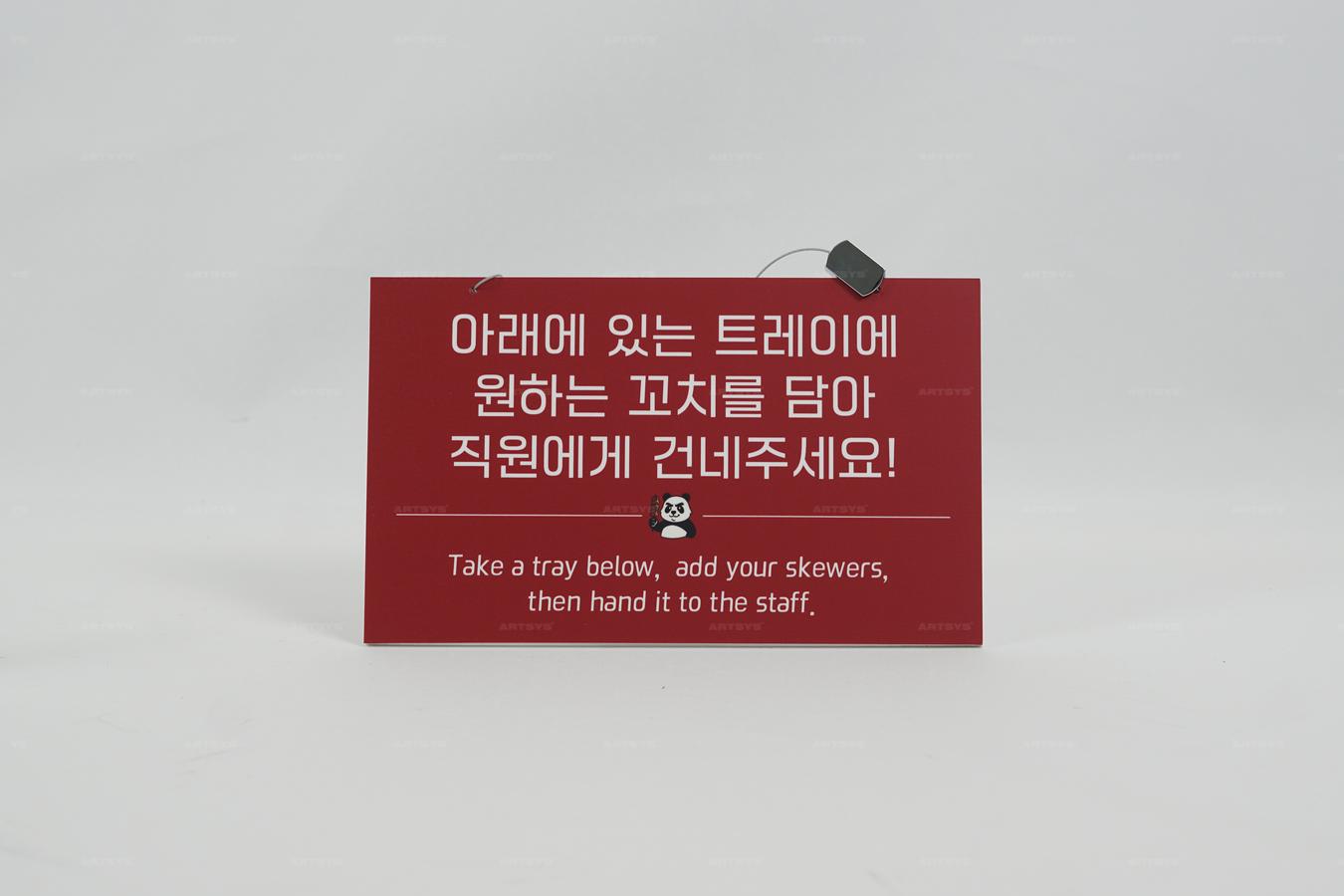 상품 소개 | 이 레드 아크릴 입간판은 고객이 원하는 꼬치를 쉽게 주문할 수 있도록 안내합니다. 튼튼한 아크릴 소재로 제작되어 있으며, 눈에 잘 띄는 레드 색상으로 식당 내에서 고객의 시선을 사로잡습니다. 고객이 아래의 트레이에 꼬치를 담아 직원에게 건네줄 수 있도록 돕는 실용적인 디자인입니다. 식당의 서비스 품질을 높이는 데 기여할 것입니다. | ||