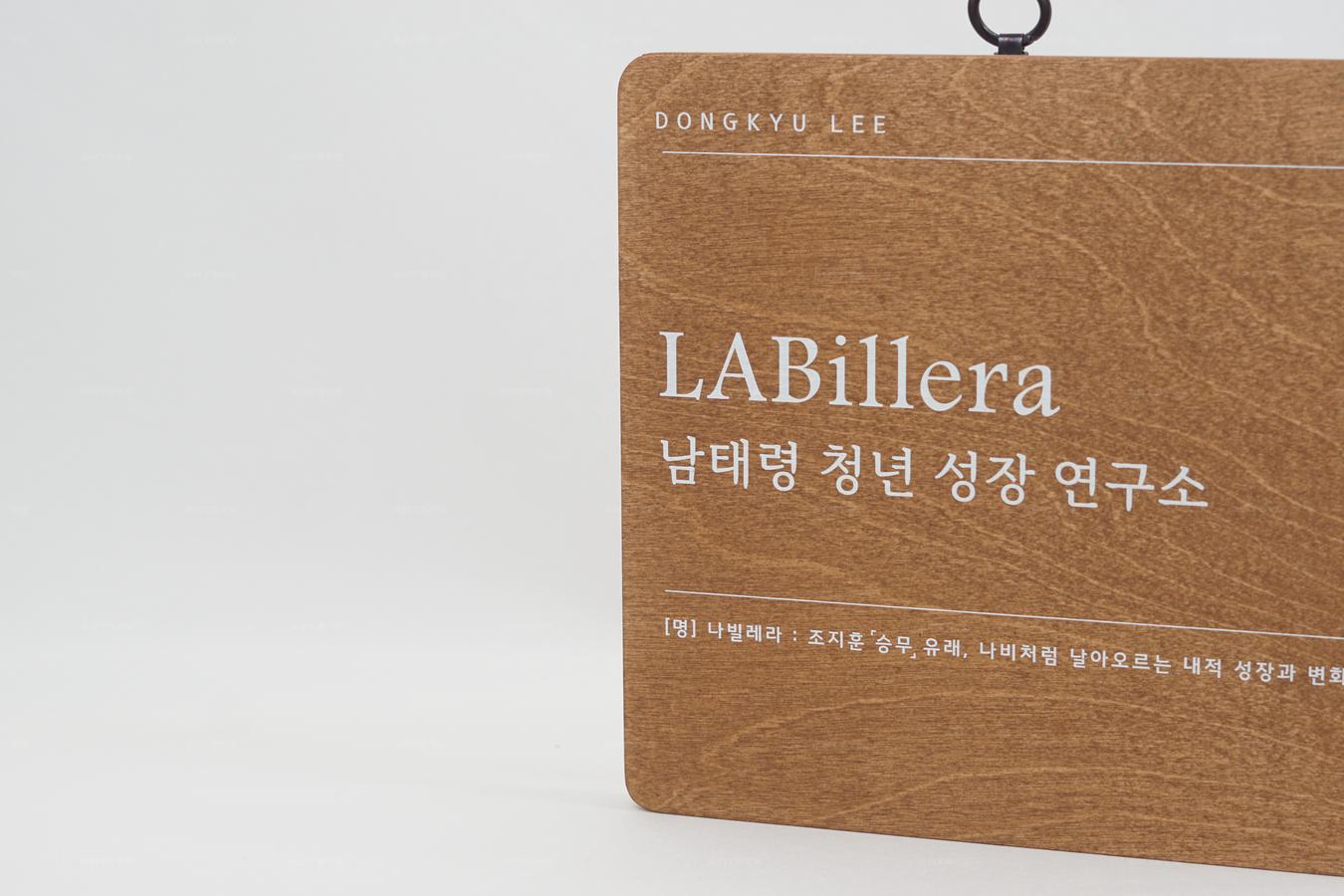 제목 | 나무 재질의 LABillera 남태령 청년 성장 연구소 간판 | ||