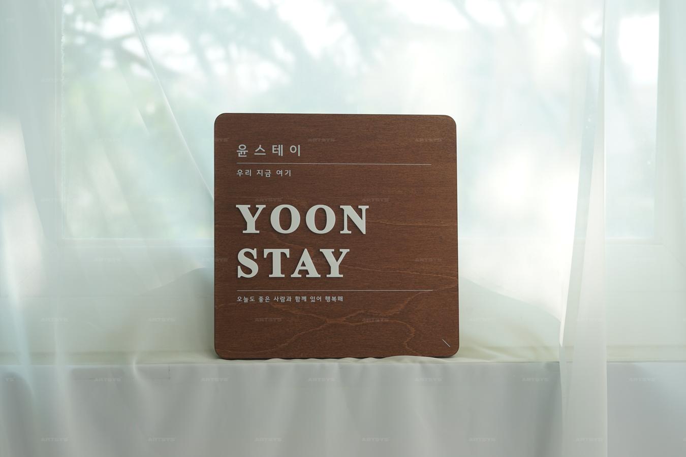 나무 재질의 AMILO 프리미엄 뷰티샵 간판