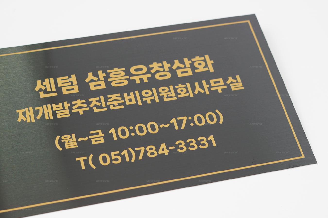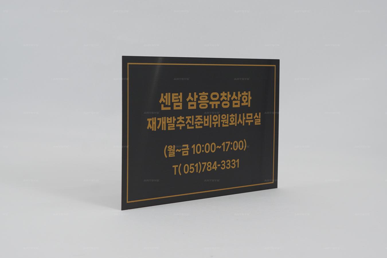 | 상품 소개 | 센터 삼흥유창삼화의 재개발 추진 준비 위원회 사무실 안내판입니다. 이 아크릴 소재의 안내판은 세련된 검정색 바탕에 금색 글씨로 정보를 명확하게 전달합니다. 주중 월요일부터 금요일까지 운영되며, 방문 시간은 10:00부터 17:00까지입니다. 고객님을 위한 친절한 안내와 함께, 이 제품은 내구성이 뛰어나고 현대적인 디자인으로 사무실의 품격을 높여줍니다. | ||