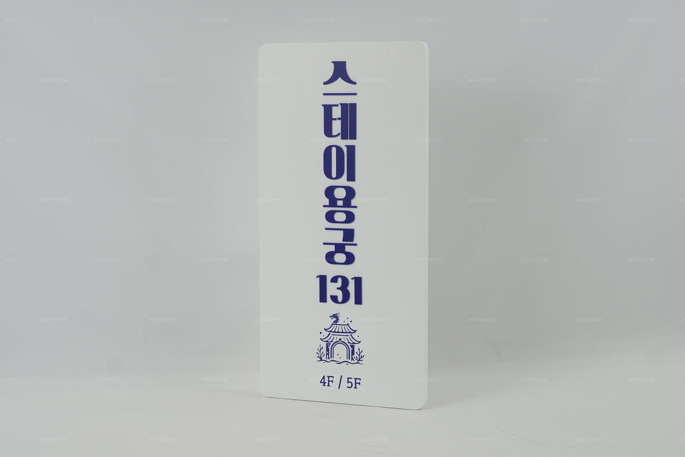 상품 소개 스테이용궁 131층 안내판은 고급 아크릴 소재로 제작되어 내구성이 뛰어나며, 깔끔한 디자인으로 어떤 공간에서도 잘 어울립니다. 흰색 배경에 진한 파란색 글씨가 조화를 이루어 시각적으로도 매력적입니다. 4층과 5층을 안내하는 명확한 표시로, 방문객들에게 편리함을 제공합니다. 이와 같은 고급스러운 사인으로 공간의 품격을 높여보세요.
