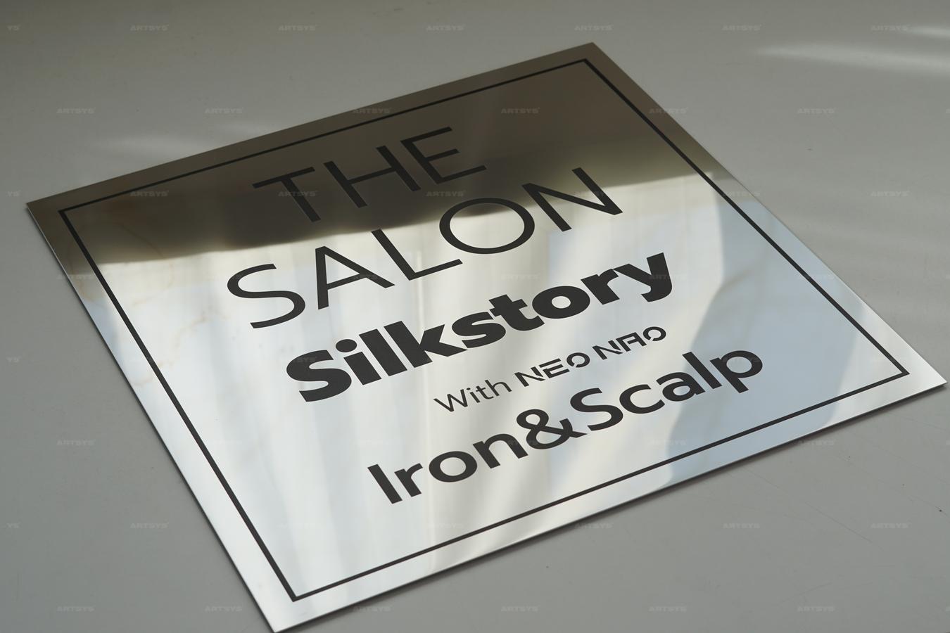 스테인리스 스틸로 제작된 헤어 스튜디오 간판