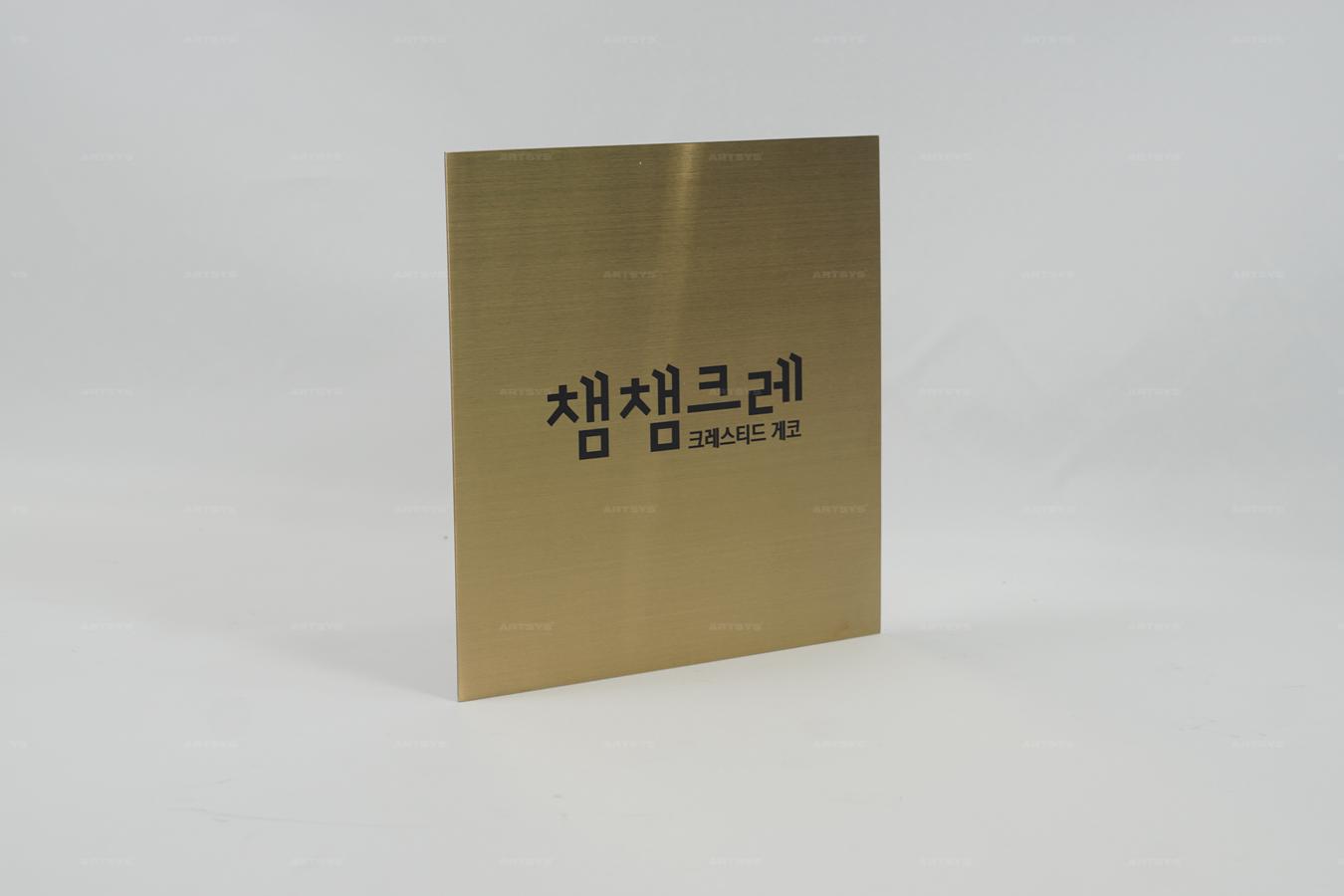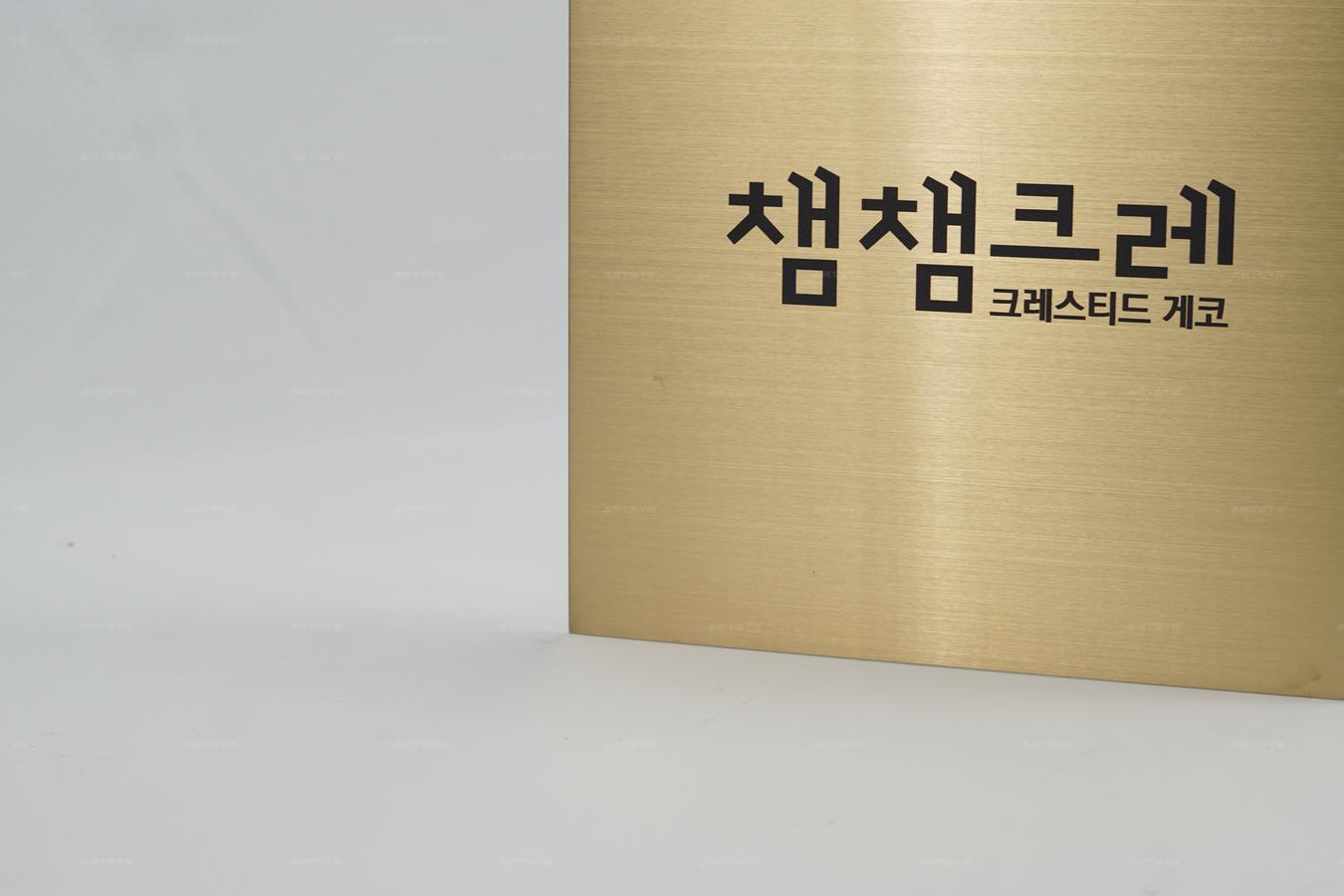 | 상품 소개 | 이 금속 입간판은 '챔챔크레 크레스트드 계코'라는 상호를 세련되게 표현합니다. 스테인리스 스틸로 제작되어 내구성이 뛰어나며, 골드미러 색상으로 고급스러운 느낌을 더합니다. 매장이나 사무실의 인테리어와 잘 어울리는 디자인으로, 고객의 시선을 사로잡을 수 있는 효과적인 선택입니다. | ||