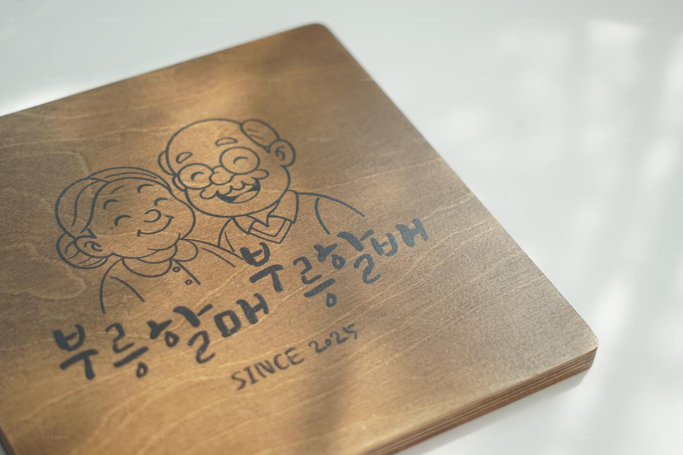 | 상품 소개 | 부룽할매부룽할배의 매력을 담은 나무 간판입니다. 내구성이 뛰어난 나무 소재로 제작되어 오래도록 사용할 수 있으며, 따뜻한 갈색 톤이 매력적입니다. 2025년부터 시작된 이 간판은 고객님들께 친근한 이미지를 전달합니다. 간판 제작을 원하신다면 지금 바로 문의해주세요! | ||