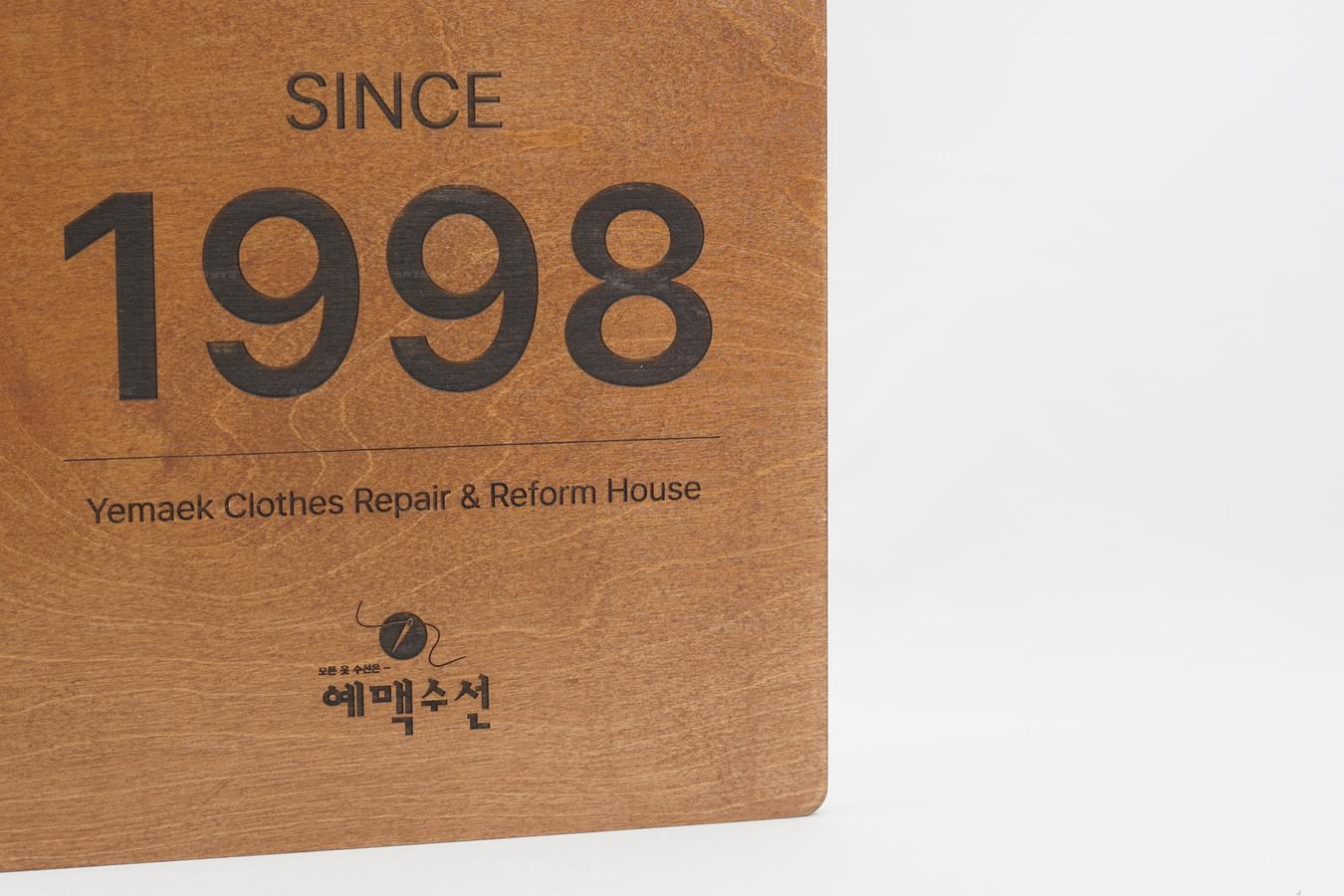 | 상품 소개 | 예맥수선은 1998년부터 의류 수선 및 리폼 서비스를 제공하는 전문점입니다. 나무 소재로 제작된 이 안내판은 따뜻한 갈색 톤으로, 고객님들에게 친근함을 전달합니다. 의류 수선과 리폼에 대한 신뢰를 주는 디자인으로, 매장 앞에 두기 적합합니다. 고품질의 나무로 제작되어 내구성이 뛰어나며, 자연스러운 느낌을 더해줍니다. | ||