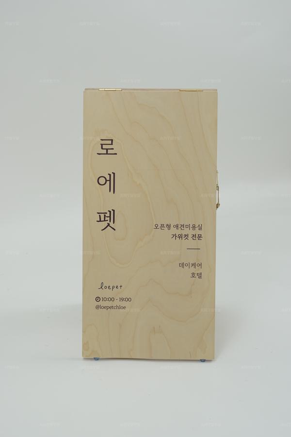 | 상품 소개 | 로에펫 애견미용실을 안내하는 나무 입간판입니다. 이 입간판은 부드러운 나무 질감과 자연스러운 색감으로, 고객들에게 따뜻한 인상을 주며, 애견 미용실의 전문성을 강조합니다. 10:00부터 19:00까지 운영되며, 데이케어와 호텔 서비스도 제공하고 있습니다. 고객님들의 방문을 기다리고 있습니다. | ||
