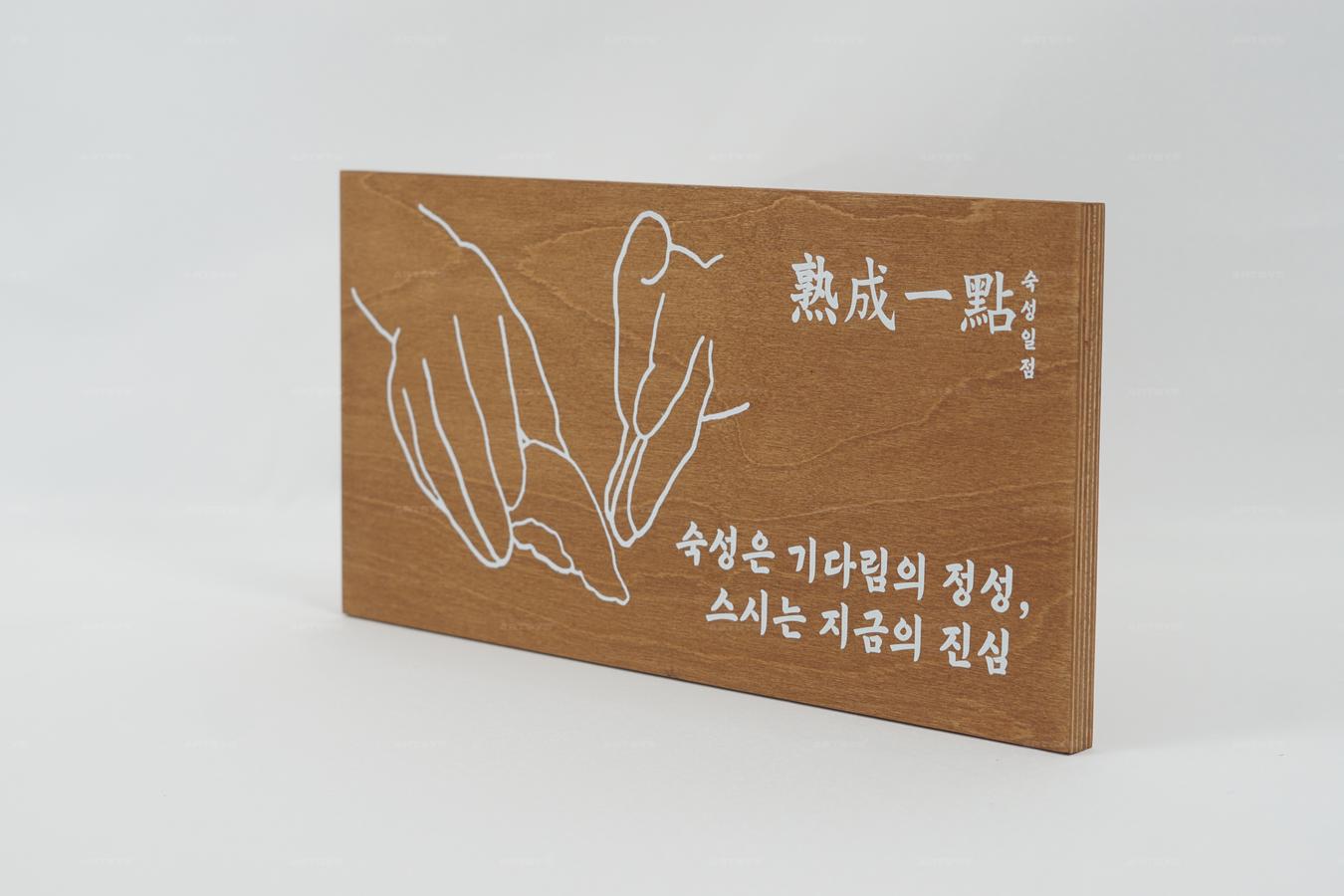 | 상품 소개 | 이 나무 입간판은 '숙성은 기다림의 정성, 스치는 지금의 진심'이라는 메시지를 담고 있습니다. 따뜻한 갈색 톤의 나무로 제작되어 자연스러운 분위기를 연출하며, 정성스러운 메시지가 돋보이는 디자인입니다. 고객의 마음을 사로잡는 이 입간판은 다양한 업종에 잘 어울리며, 품격 있는 공간을 만들어 줍니다. | ||