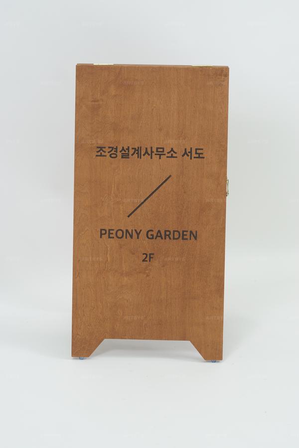 | 상품 소개 | 이 나무 입간판은 PEONY GARDEN 2층으로 안내하는 역할을 합니다. 자연스러운 갈색 톤의 우드 소재로 제작되어, 공간의 분위기를 따뜻하게 만들어 줍니다. 조경설계사무소 서도의 위치를 명확하게 나타내어 방문객들이 쉽게 찾을 수 있도록 도와줍니다. 이 제품은 실내외 모두에 적합하며, 내구성이 뛰어난 나무 재질로 오랜 사용이 가능합니다. 고객의 요구에 맞춰 다양한 디자인으로 제작할 수 있습니다. | ||