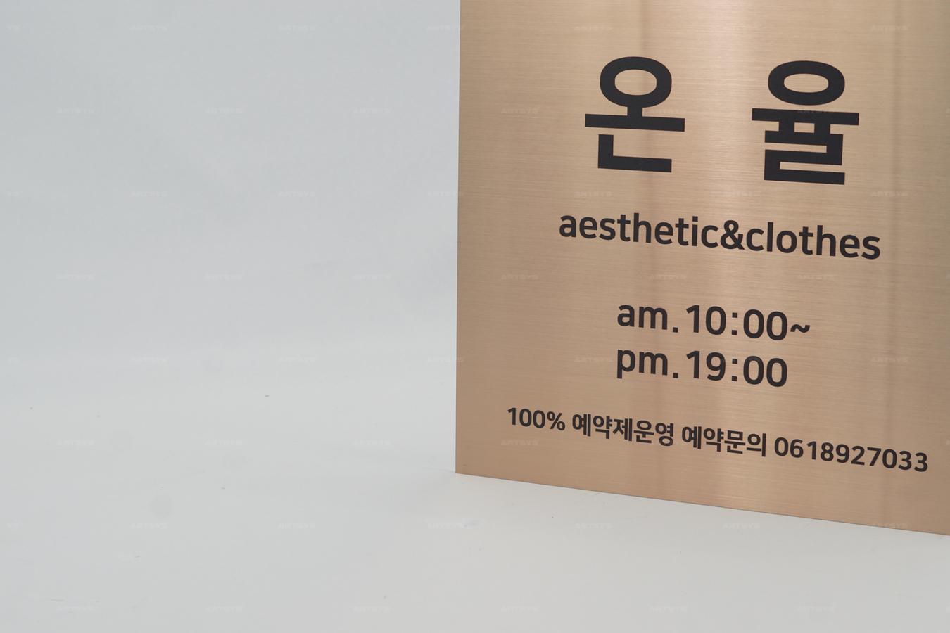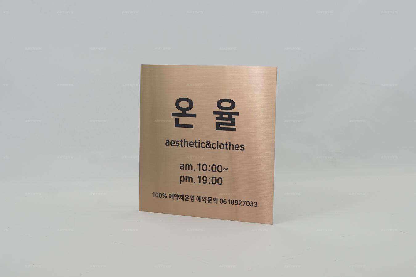 | 제목 | 브론즈 스테인리스 스틸 간판 - 온율 미용실 및 의류 매장 | ||