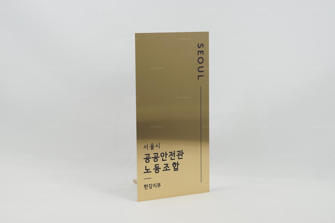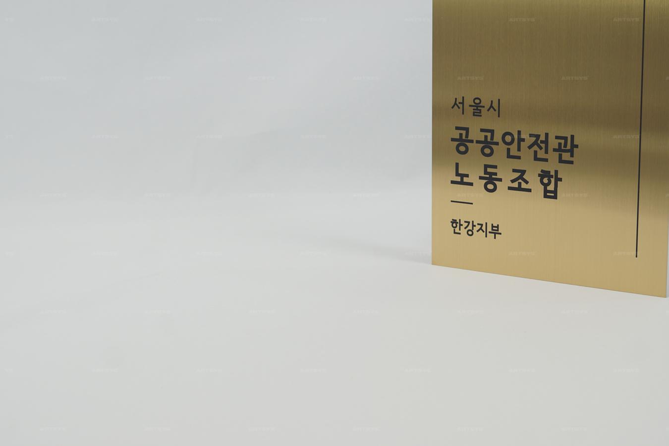 | 제목 | 서울시 공공안전관 노동조합 표지판 - 스테인리스 스틸 골드 헤어라인 | ||