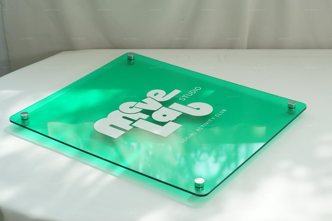 | 상품 소개 | 이 아크릴 간판은 소셜 액티비티 클럽 'move Lab'의 독특한 디자인을 강조합니다. 민트 색상의 아크릴로 제작되어 시각적으로 매력적이며, 스튜디오의 창의적인 분위기를 잘 전달합니다. 설치가 용이하며, 내구성이 뛰어나 오랜 시간 동안 사용이 가능합니다. 고객의 관심을 끌기에 최적화된 이 간판은 다양한 환경에 적합합니다. | ||