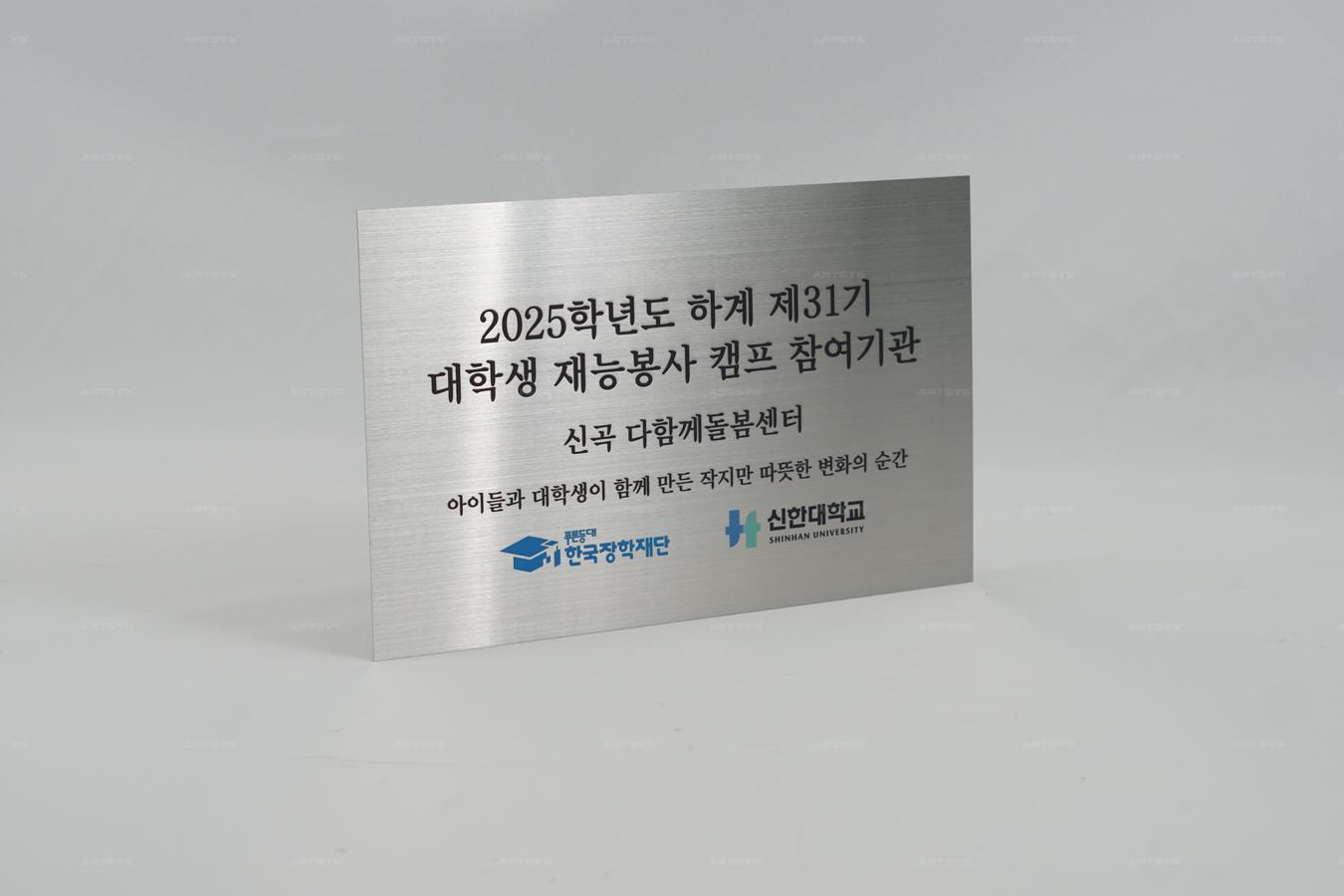 | 제목 | 스테인리스 스틸 재질의 대학생 재능봉사 캠프 참여기관 안내판 | ||