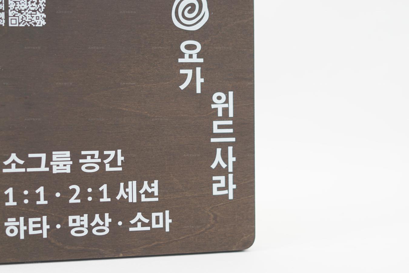 | 상품 소개 | 요가 위드사라의 소그룹 공간 안내판을 소개합니다. 이 고급스러운 나무 소재의 안내판은 하타, 명상, 소마 세션에 대한 정보를 제공합니다. 부드러운 갈색 톤으로 제작되어 어떤 공간에도 잘 어울립니다. 요가 수업이나 명상 세션을 위한 완벽한 선택입니다. | ||