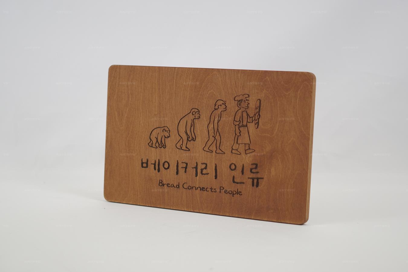 | 상품 소개 | 이 우드 간판은 '베이커리 인류'라는 매력적인 메시지를 담고 있습니다. 따뜻한 갈색 톤이 매장에 자연스러운 분위기를 더해주며, 독특한 디자인의 일러스트가 고객의 시선을 사로잡습니다. 나무 소재로 제작되어 내구성이 뛰어나고, 다양한 매장에 잘 어울립니다. 고객과의 소통을 중요시하는 베이커리의 아이덴티티를 잘 표현한 간판입니다. | ||