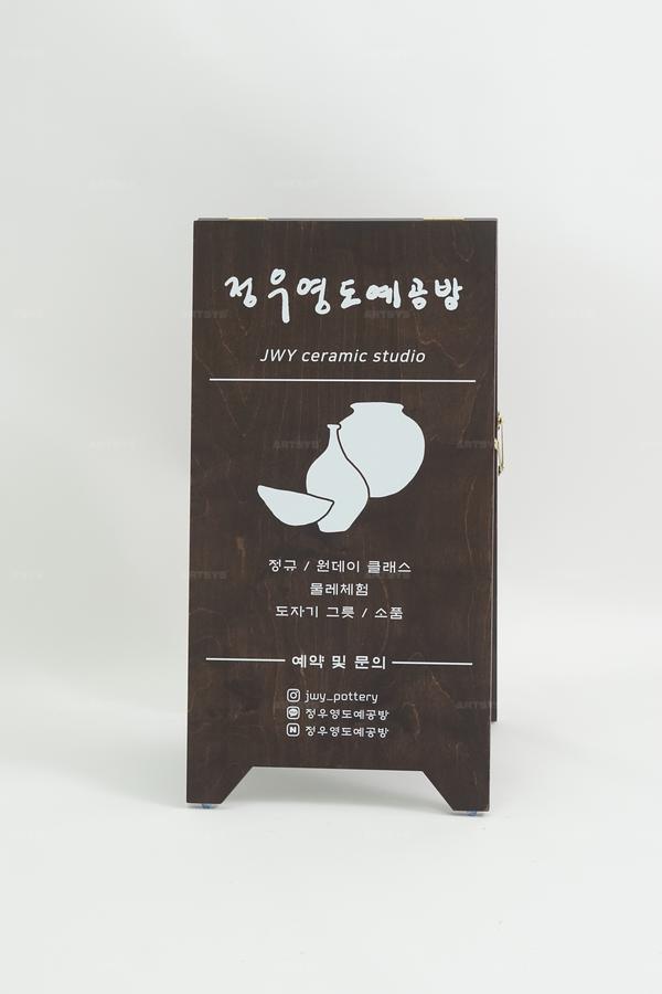 상품 소개 전우영도예공방의 원데이 클래스 도자기 체험을 소개합니다. 고급스러운 다크브라운 나무 소재로 제작된 입간판은 세련된 디자인으로 방문객의 시선을 사로잡습니다. 도자기 그릇과 소품을 직접 만들어보는 기회를 제공하며, 예약 및 문의는 인스타그램 @juy_pottery를 통해 가능합니다. 특별한 경험을 원하신다면 지금 바로 예약하세요!