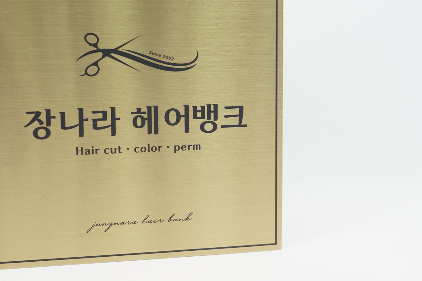 브라운 헤어라인 스테인리스 간판 E·루 hair 다