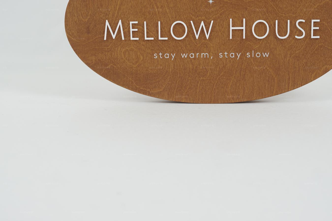 | 상품 소개 | 따뜻한 분위기를 자아내는 나무 소재의 MELLOW HOUSE 간판입니다. 이 간판은 믿기적 하우스의 이름을 세련되게 표현하며, 'stay warm, stay slow'라는 문구로 아늑함을 강조합니다. 나무의 자연스러운 질감과 브라운 계열의 색상은 어떤 공간에서도 잘 어울립니다. 카페나 소품 가게에 적합한 디자인으로, 고객의 눈길을 사로잡는 매력적인 간판입니다. | ||