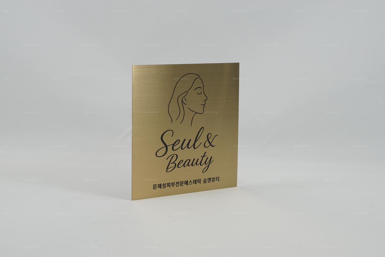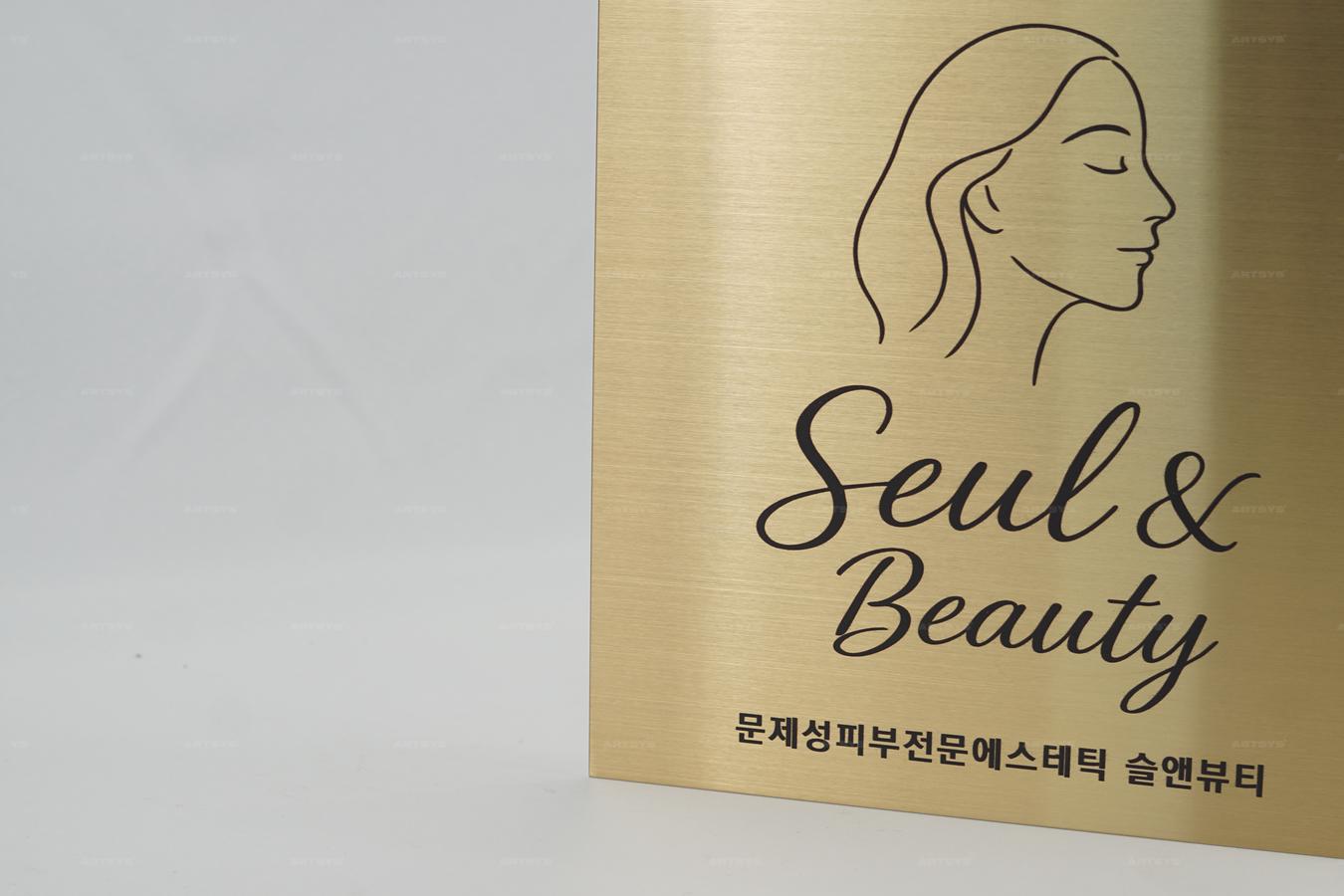 | 상품 소개 | 이 세련된 스테인리스 스틸 골드 입간판은 'Seul & Beauty'라는 이름으로 문제성 피부 전문 에스테틱 술앤뷰티를 나타냅니다. 매력적인 골드 미러 마감으로 고급스러운 느낌을 주며, 고객의 이목을 사로잡는 디자인입니다. 미용실 및 에스테틱 샵에 최적화된 이 입간판은 브랜드 이미지를 한층 더 높여줄 것입니다. | ||