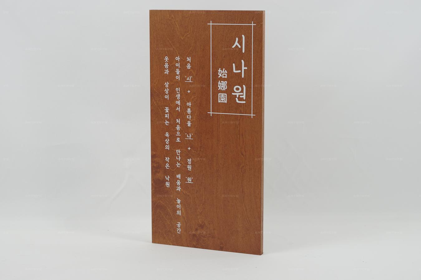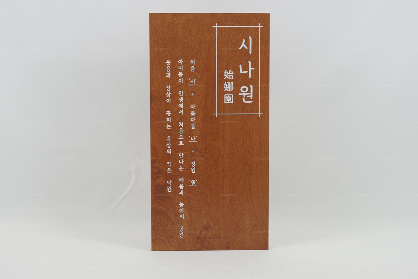 | 상품 소개 | 이 나무 재질의 입간판은 시나원의 아름다움을 나타내는 디자인으로, 아이들이 인생에서 처음으로 만나는 배움과 놀이의 공간을 상징합니다. 갈색의 따뜻한 색감이 돋보이며, 자연 친화적인 느낌을 줍니다. 이 입간판은 유아 교육 기관이나 정원에 적합한 제품으로, 아이들에게 친근한 이미지를 제공합니다. | ||