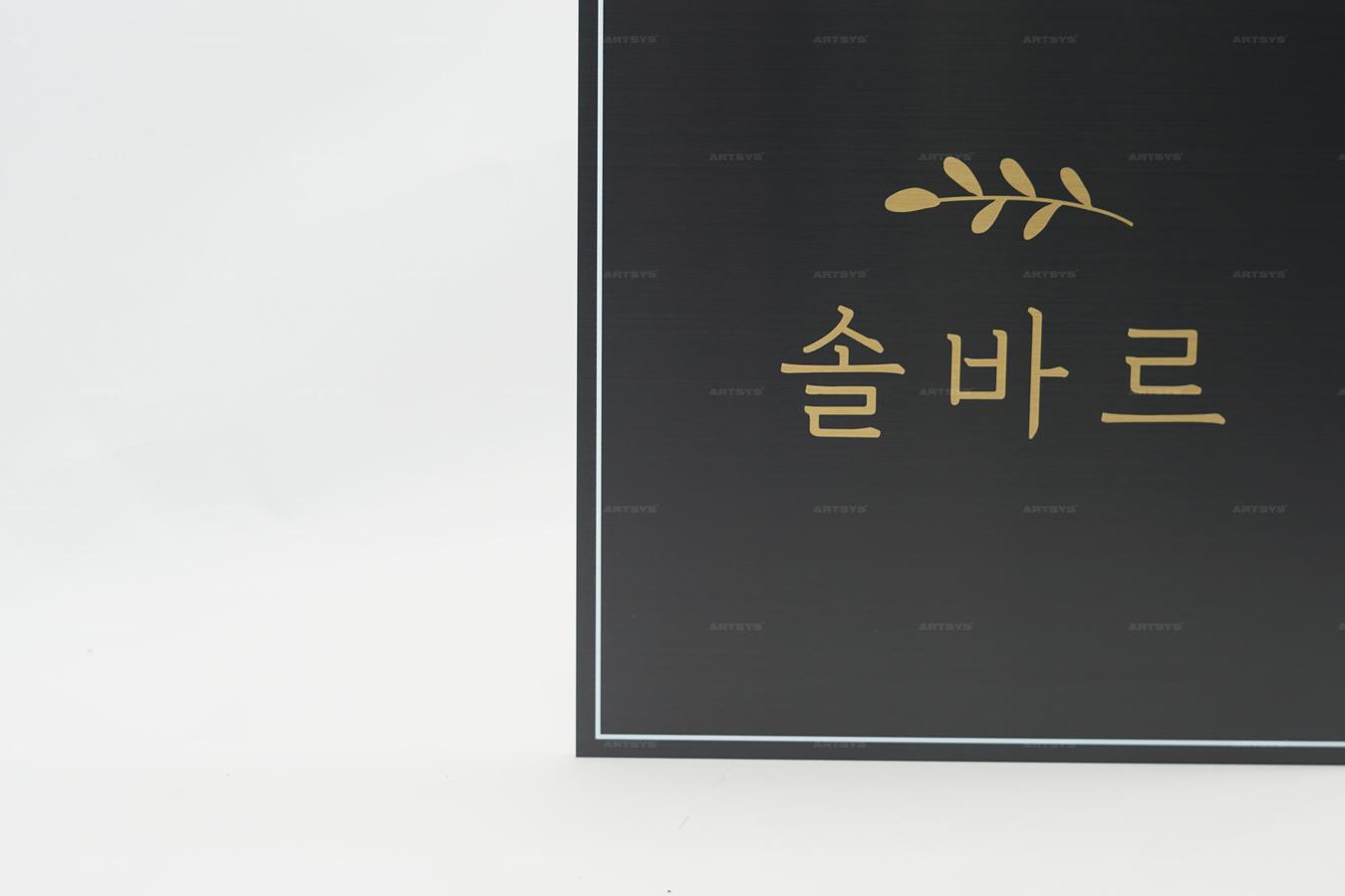 | 상품 소개 | 세련된 디자인의 스테인리스 스틸 간판입니다. 블랙헤어라인 색상으로 고급스러운 느낌을 주며, '솔바르'라는 이름이 아름답게 새겨져 있습니다. 이 간판은 내구성이 뛰어나고, 다양한 환경에서도 잘 어울립니다. 비즈니스의 품격을 높여줄 완벽한 선택입니다. | ||