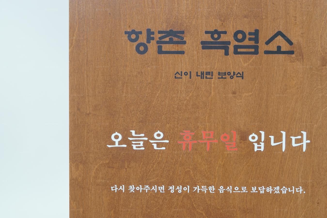 | 제목 | 나무 입간판 - 향촌 흑염소 휴무 안내 | ||