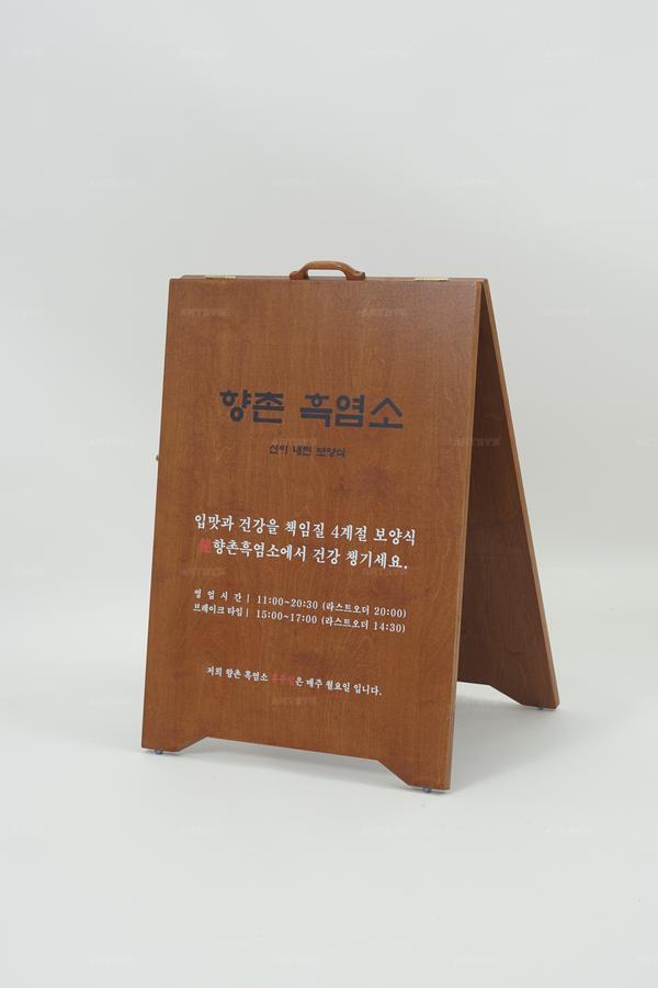 | 상품 소개 | 이 나무 입간판은 향촌 흑염소의 휴무일을 안내하는 매력적인 디자인으로 제작되었습니다. 정성이 가득한 음식을 제공하는 이곳은 고객님을 다시 맞이할 준비가 되어 있습니다. 갈색의 따뜻한 느낌을 주는 이 입간판은 자연스러운 우드 소재로 제작되어, 식당의 분위기를 한층 더 돋보이게 합니다. 고객의 방문을 기다리는 이 특별한 안내판으로 더 많은 손님을 맞이해 보세요. | ||