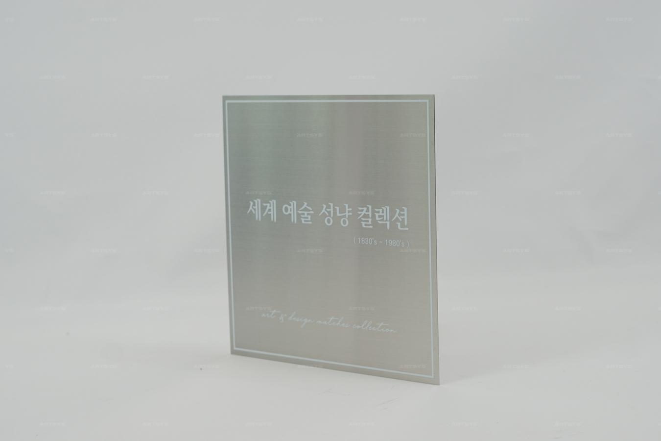 | 상품 소개 | 이 스테인리스 스틸로 제작된 간판은 세계 예술 성냥 컬렉션을 주제로 하여 세련된 디자인과 고급스러운 헤어라인 마감 처리가 특징입니다. 실버 색상으로, 어떤 공간에도 잘 어울리며, 예술적인 감각을 더해줍니다. 고품질의 스테인리스 스틸 소재로 내구성이 뛰어나며, 오랜 시간 동안 변색 없이 사용할 수 있습니다. | ||