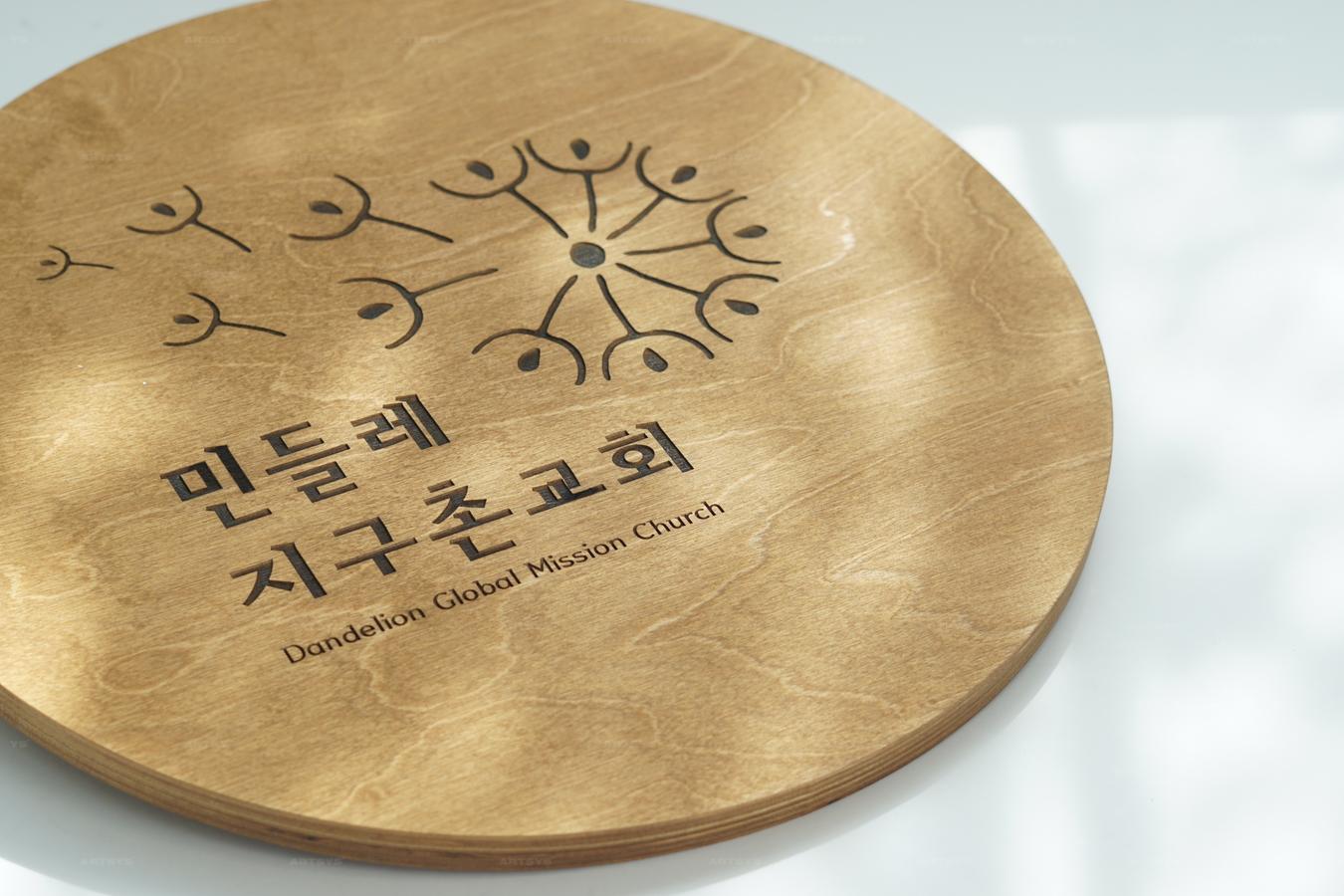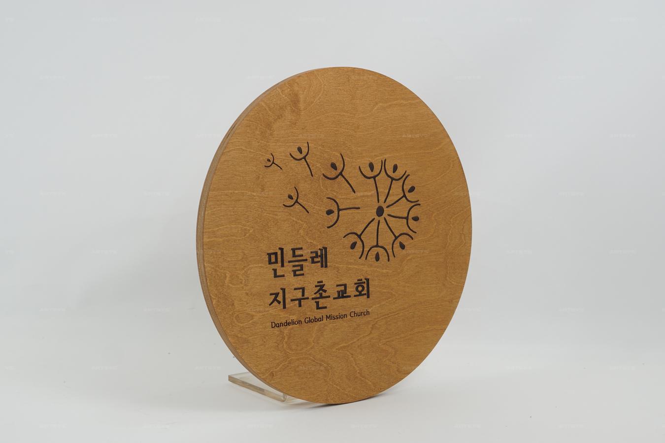 | 제목 | 나무 원형 간판 - 민들레 지구초교회 | ||