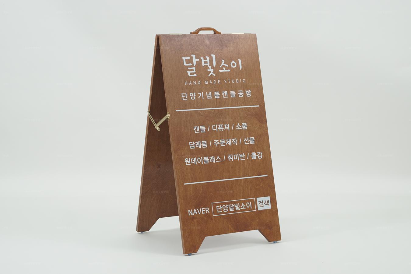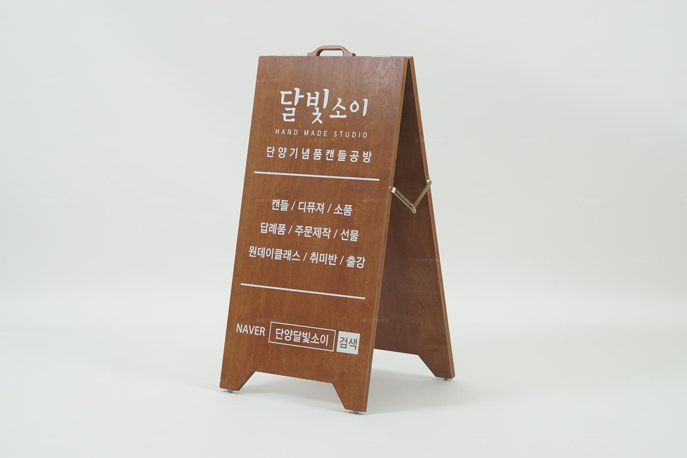 | 상품 소개 | 단양기념 품질공방 '달빛소이'의 입간판은 고급스러운 갈색 나무로 제작되었습니다. 캔들, 디퓨저, 소품 등 다양한 제품을 소개하며, 주문제작 및 원데이 클래스도 진행합니다. 고객 맞춤형 선물과 취미반을 통해 특별한 경험을 제공합니다. 자연 친화적인 소재로 만들어져, 따뜻한 감성을 더해주는 이 입간판은 방문객들에게 매력적인 첫인상을 남길 것입니다. | ||