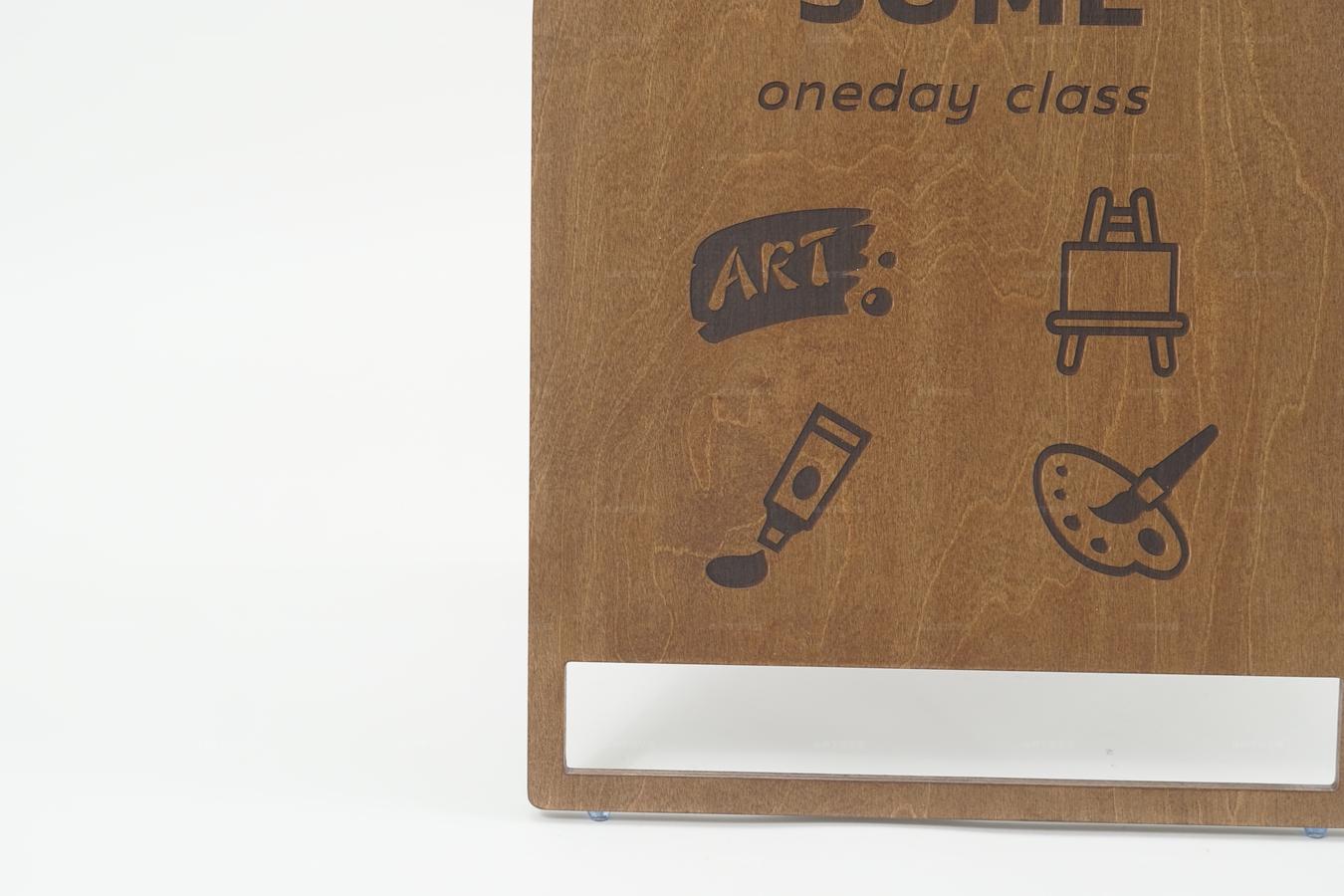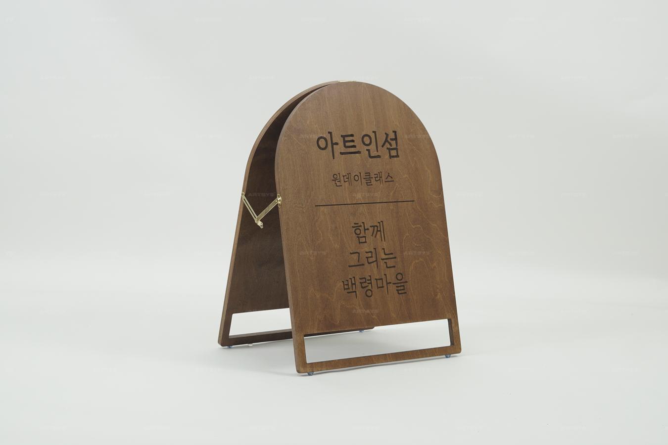 | 상품 소개 | 이 나무 입간판은 'ART IN SOME 원데이 클래스'를 안내하는 멋진 디자인으로, 문화와 예술 커뮤니티의 매력을 전달합니다. 자연스러운 갈색 톤으로 어떤 공간에도 잘 어울리며, 튼튼한 구조로 실내외 모두에 적합합니다. 이 입간판은 고객의 시선을 사로잡고, 방문객들에게 특별한 경험을 제공합니다. | ||
