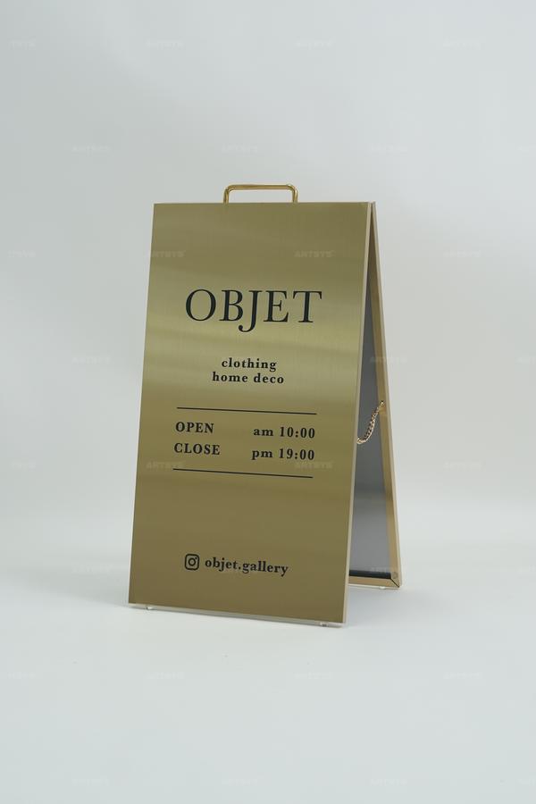 골드 스테인리스 스틸 입간판 - OBJET 의류 및 홈 데코