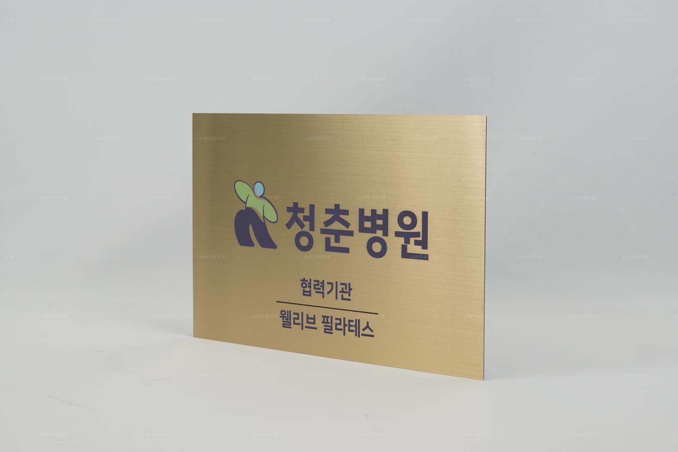 청춘병원 협력기관 웰빙 필라테스 스테인리스 스틸 간판