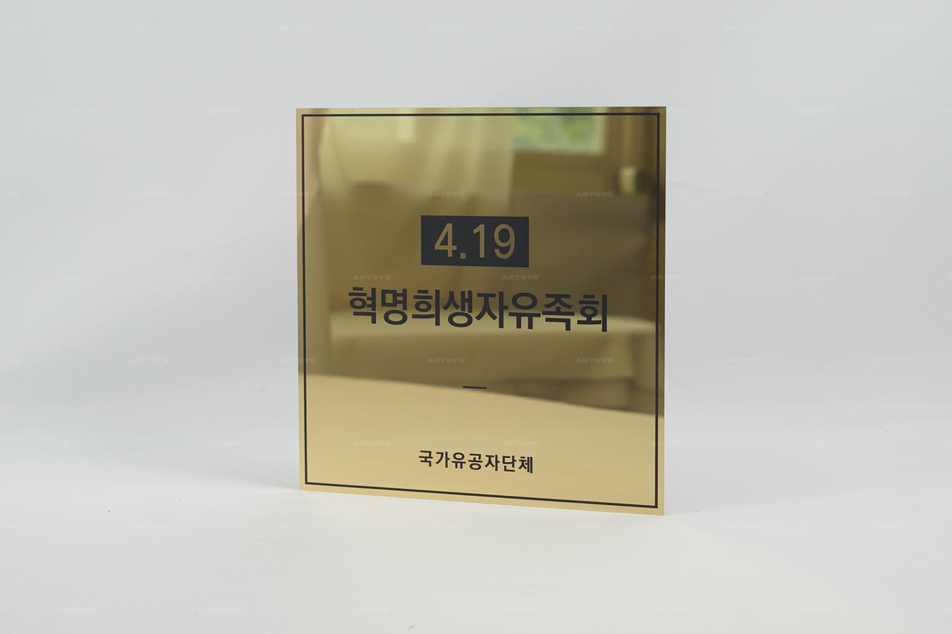 금속 재질의 4.19 혁명희생자유족회 표지판