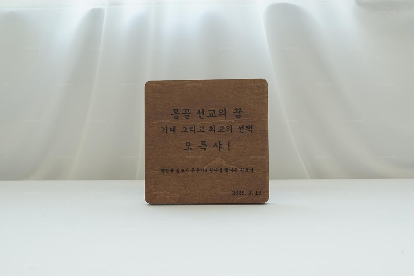 나무로 제작된 몽골 선교 기념판