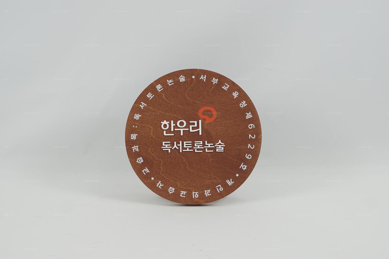 한우리 독서토론논술 원형 나무 간판