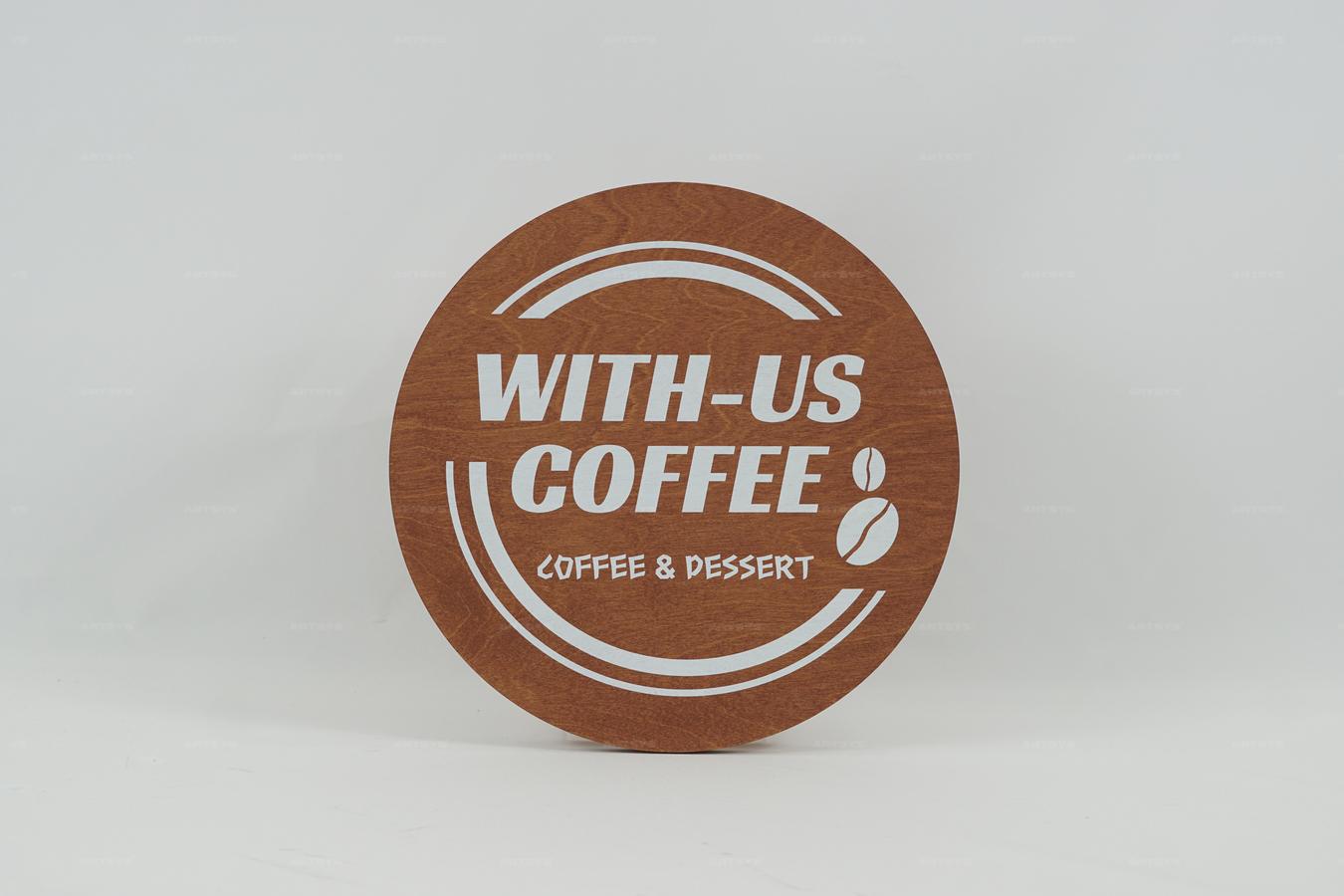 나무 재질의 원형 커피 간판 - WITH-US COFFEE