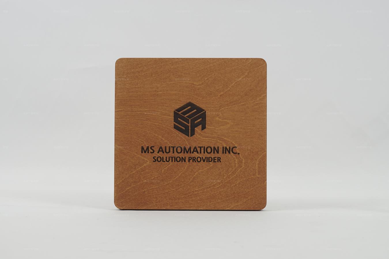 나무 소재 MS AUTOMATION INC. 솔루션 제공자 간판