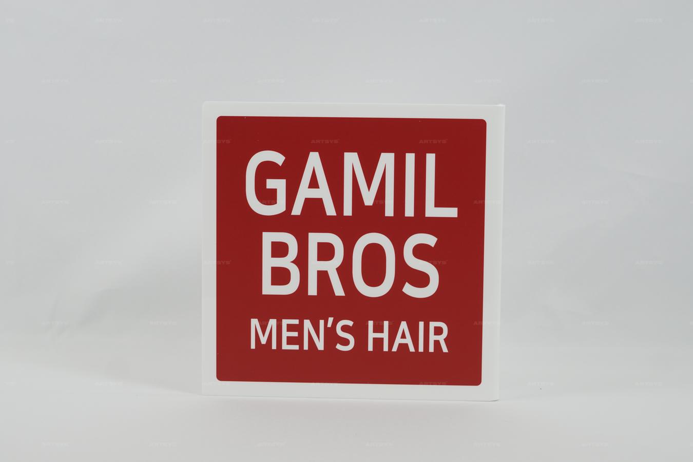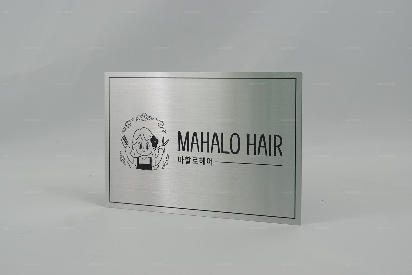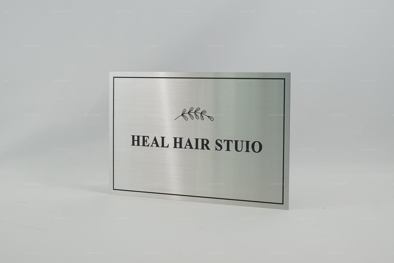 스테인리스 스틸로 제작된 헤어 스튜디오 간판