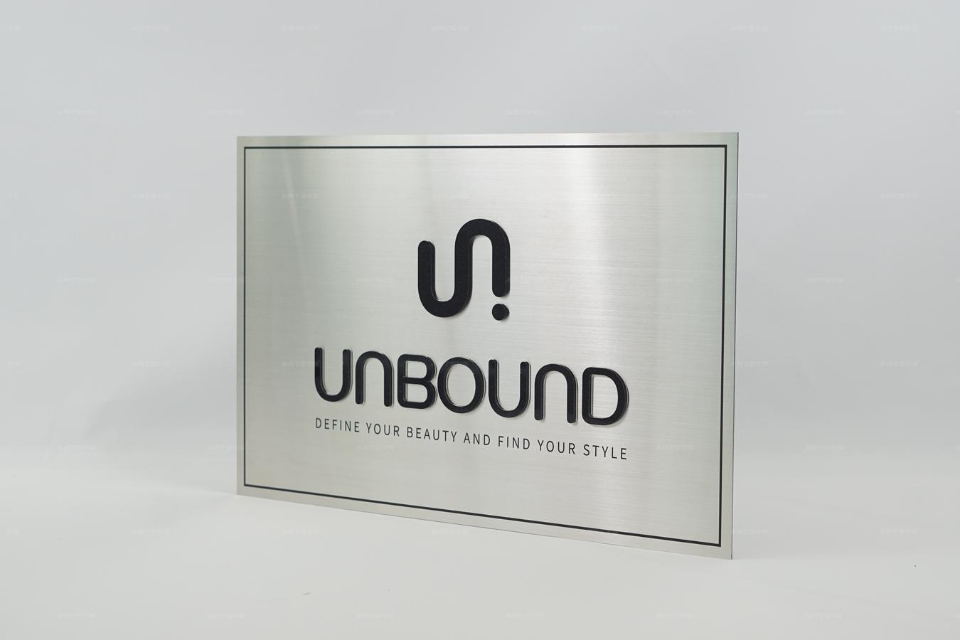 스테인리스 스틸로 제작된 UNBOUND 간판 - 아름다움을 정의하세요