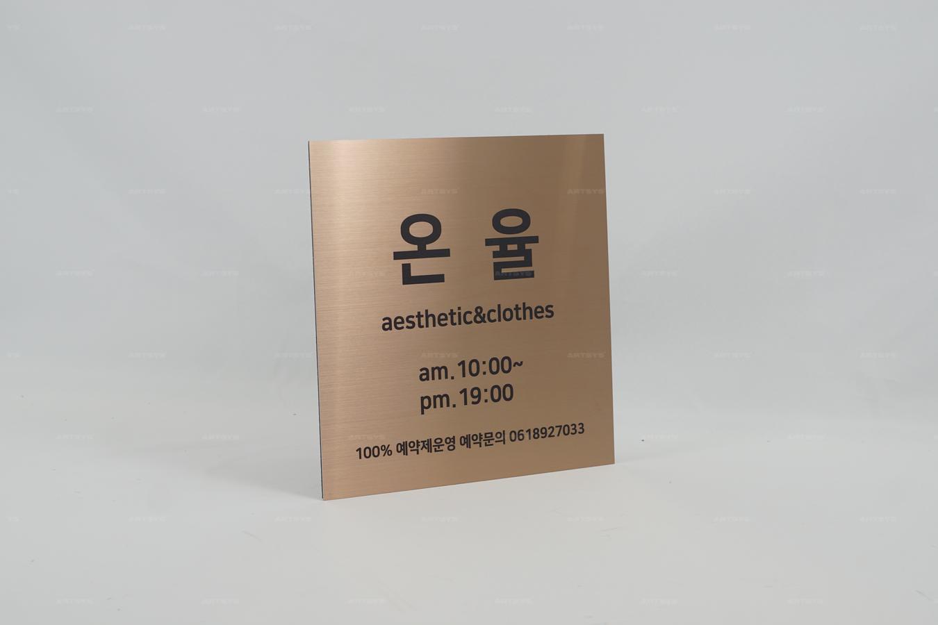 브론즈 스테인리스 스틸 간판 - 온율 미용실 및 의류 매장