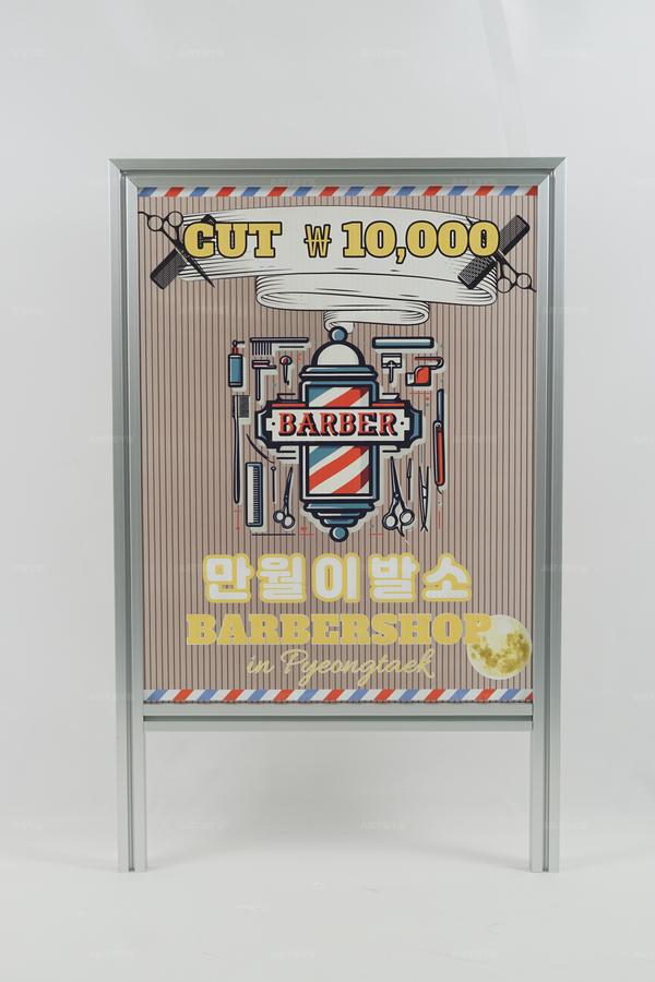 아크릴 입간판: 만월이발소 10,000원 컷팅 서비스