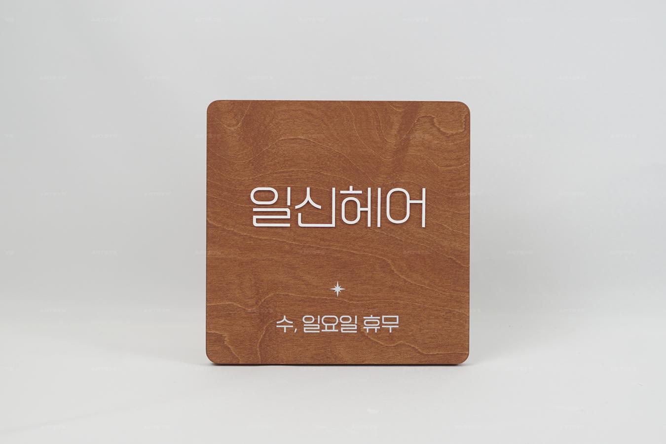 일신헤어 나무 간판 - 수요일 일요일 휴무 안내