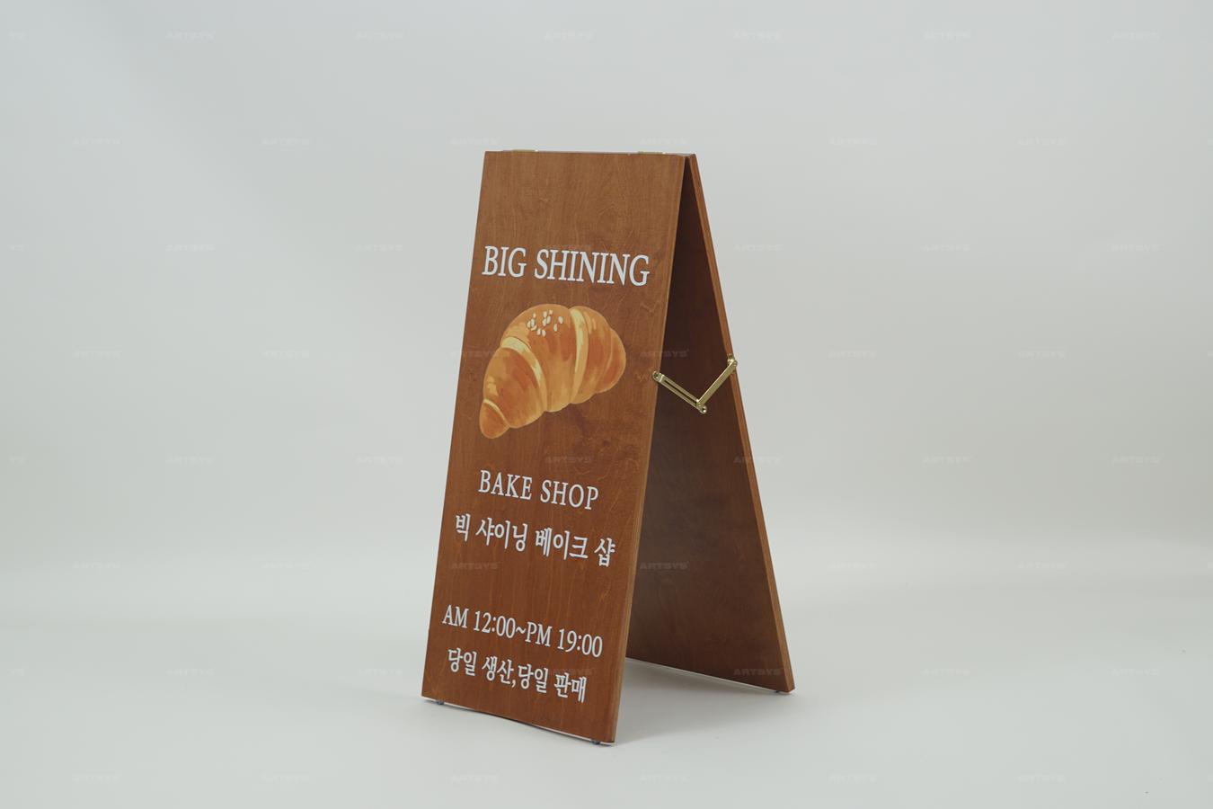 나무 입간판 - 빅 샤이닝 베이크 샵 안내