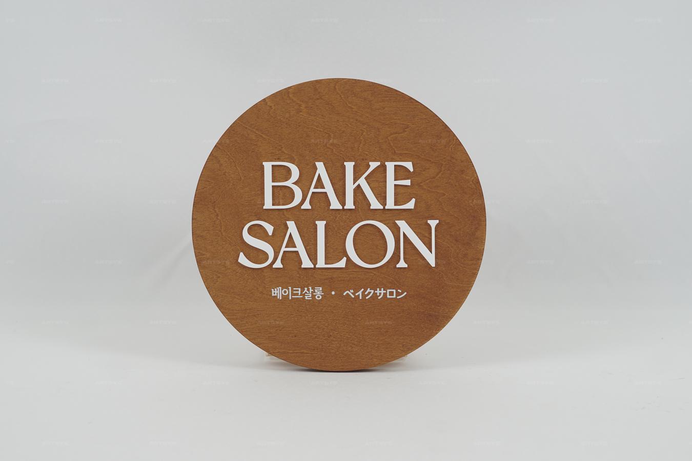 나무 원형 간판 - 베이크살롱