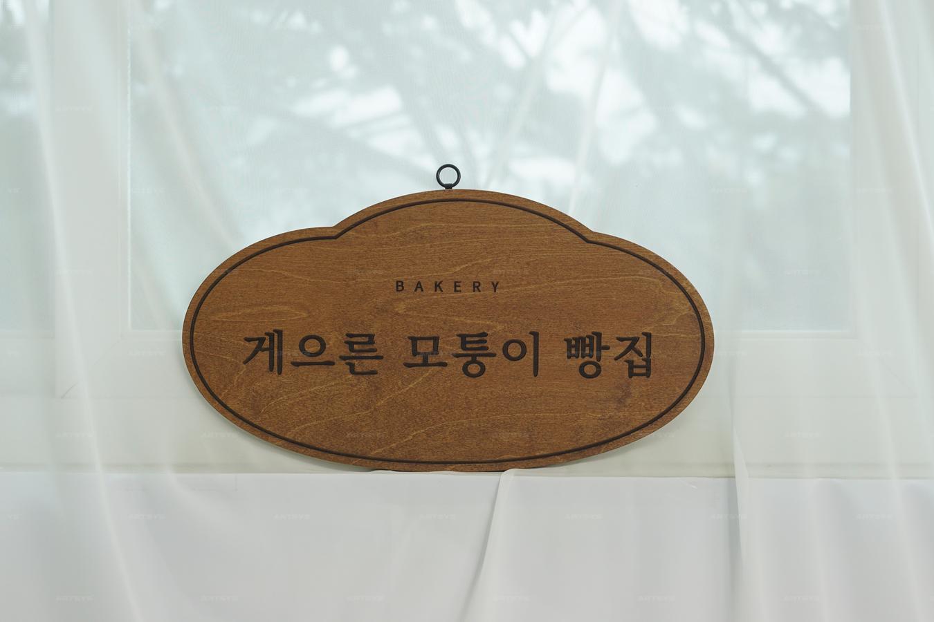 우드 소재의 베이커리 간판 - 베이커리 인류